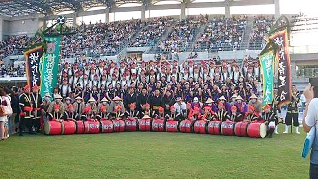 男性陣はダイナミックで躍動感ある踊りで観客を圧倒、女性陣のしなやかで優雅な動作が力強い太鼓の音色に華を添えます。